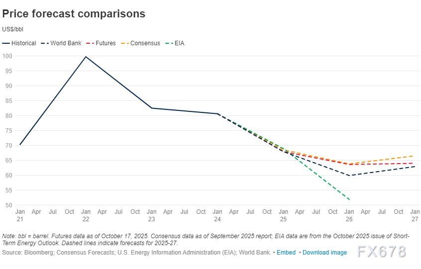 出现这一结果的原因可能包括:非经合组织(OECD)主要消费国的需求强于预期,以及受OPEC+限制或美国产量下降影响,供应增长受限。此外,中东或乌克兰等地区的冲突升级,以及额外限制(包括美国近期对俄罗斯石油公司采取的措施)对市场的影响,也可能推动油价高于当前预测。