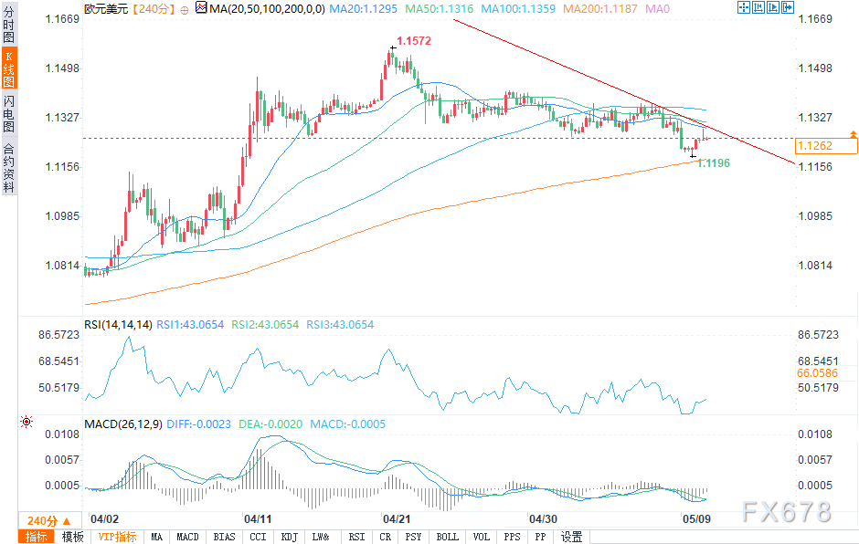 嘉盛——周五(5月9日)美盘时段,美元指数走跌,盘中报100.2794/2967,跌幅0.34%。