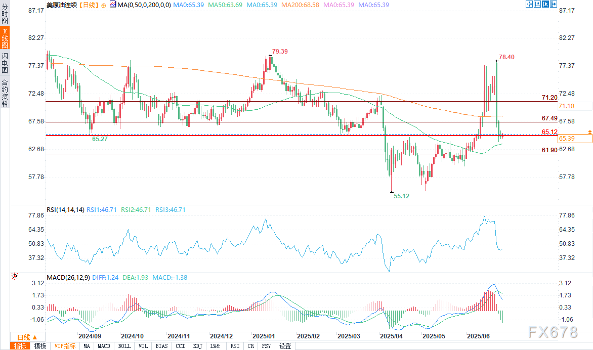 若持续跌破该水平,将证实抛售压力重现,跌破破64.00美元可能引发跌向61.90美元的行情。   上行方面,若维持在65.12美元上方,可能推动短期反弹至67.44美元,若动能增强,或进一步触及71.20美元。   欧佩克+减产策略加剧交易员不确定性   俄罗斯原油公司(Rosneft)首席执行官伊戈尔·谢钦(Igor Sechin)的最新言论引发了对欧佩克+政策的新疑问。他暗示,计划中的增产可能提前至多一年。这一潜在调整发生在该联盟延长减产协议仅数周后,令油价预测更加复杂。若供应增加早于预期,可能抑制涨幅,尤其是在全球需求未能同步加速的情况下。   美国库存大幅下降推动需求反弹   支撑油价的因素包括:美国能源信息署(EIA)最新数据显示美国燃料消费强劲。上周原油库存减少580万桶,远高于预期的79.7万桶降幅;同时,汽油库存减少210万桶,而市场此前预期将增加。   值得注意的是,汽油供应量飙升至2021年12月以来的最高水平,证实了延迟但现已活跃的驾驶旺季。这一基本面强劲为油价提供了缓冲,抵御地缘政治风险和技术面压力。   交易员重新评估地缘风险聚焦停火协议影响   随着交易员解读伊朗以色列停火协议的信号,原油市场陷入盘整。尽管美国总统特朗普对停火表示欢迎,并暗示可能放宽对伊朗的制裁,但他的言论对伊朗原油出口仍持强硬态度。美国执法政策的任何调整都可能释放更多原油供应,压制油价。目前,地缘政治风险溢价有所减弱,但仍是关键观察点。   市场展望:整体偏向中性