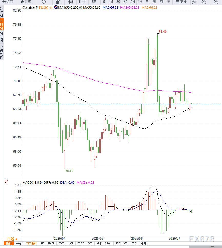 市场结构凸显短期供应紧张,尽管OPEC+正在快速放松产量限制。   当前原油和柴油期货曲线近月合约仍呈现现货升水(即backwardation)状态,这意味着现货价格高于远期价格,交易者为获取即期原油需支付更高成本。这种市场结构通常反映出实际供应紧张,尽管产油国组织OPEC+已在近期迅速取消限产措施。   油价实现三连涨,机构认为核心价格区库存仍偏低。   进入7月以来,国际油价继续攀升,延续了5月和6月的上涨势头。摩根士丹利与高盛集团近日均指出,尽管全球库存整体在上升,但真正对价格构成影响的地区——尤其是美国的库存——依旧偏低。   高盛油市研究主管Daan Struyven在接受市场调查采访时表示:“虽然全球库存增加显著,但关键定价中心,特别是美国的库存水平依然偏低。市场关注点已逐渐转向供应端的下行风险。”   从技术图形上看,美原油(WTI)日线图维持稳步震荡上行格局,目前价格运行在20日与50日均线之上,显示出明显的多头排列结构。   RSI指标持稳在60上方,未见超买信号,动能指标MACD亦维持红柱放量,表明买盘动能持续增强。若WTI能有效突破67美元关键阻力位,有望进一步挑战69美元前期高点;下方支撑则位于65美元一线,一旦失守,可能引发短线回调。